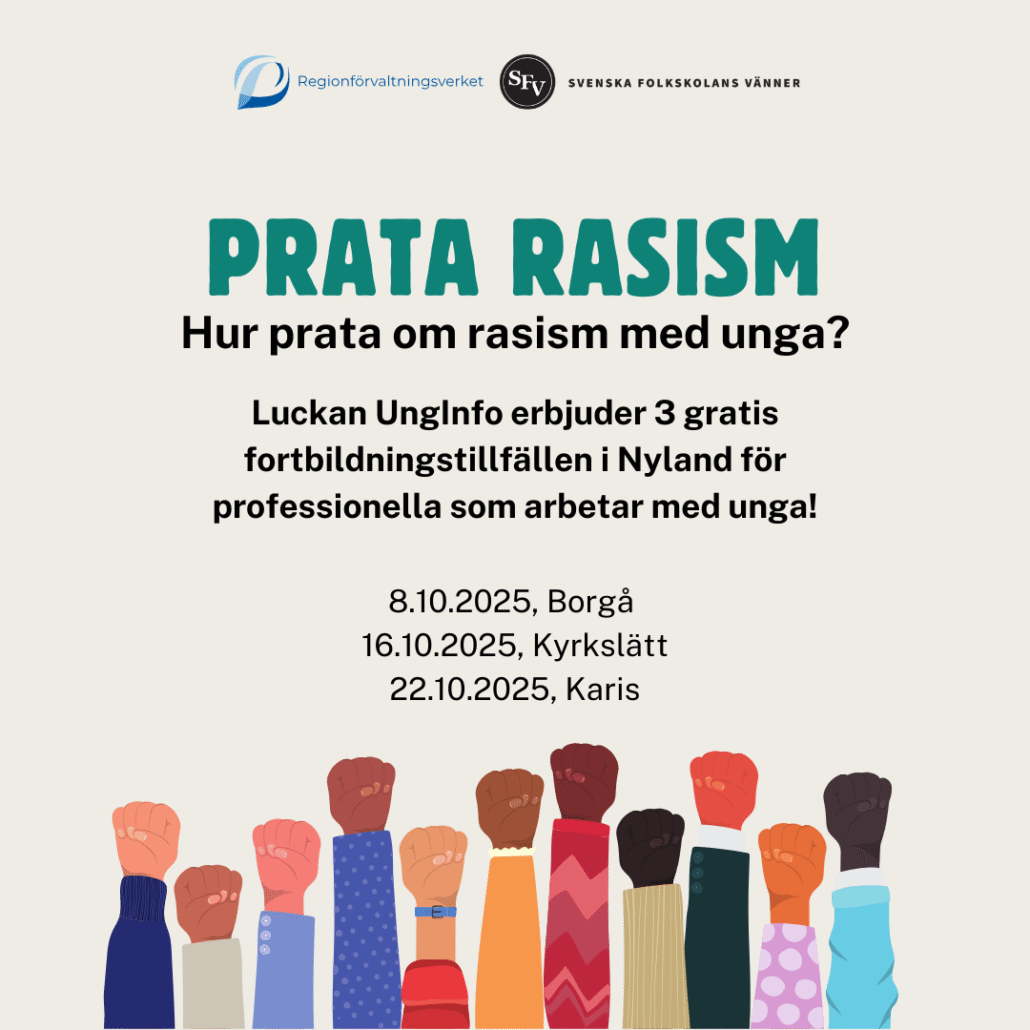 Luckan UngInfo ordnade fortbildningsevenemanget “Att prata rasism” måndag 5.5.2025 kl. 9-12 på Luckan Raseborg, Fokushuset i Karis.