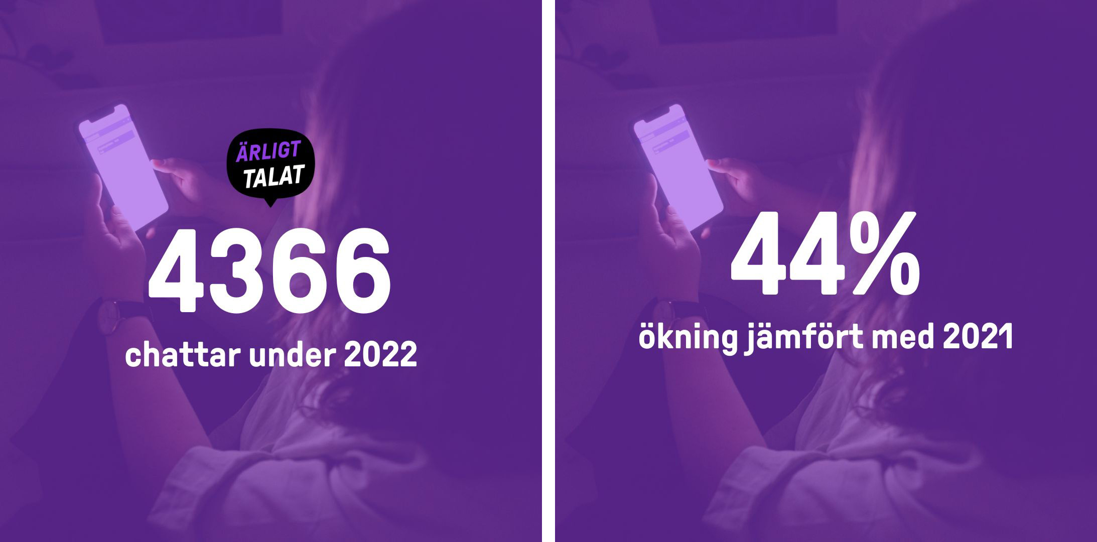 2022 var ett rekordår för stödchatten ÄRLIGT TALAT! Det var 4366 ungdomar och unga vuxna som tog kontakt, aldrig tidigare har vi haft så många chattar under ett år. Det är en ökning med 44% jämfört med Corona-året 2021.