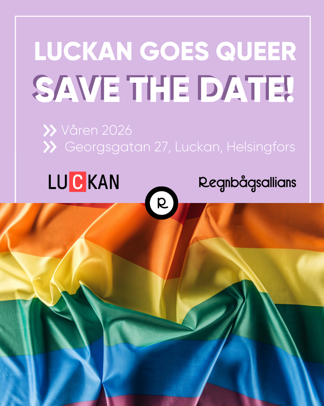 Mer information kommer i januari! Evenemangen är ett samarbete mellan Luckan och Regnbågsallians.